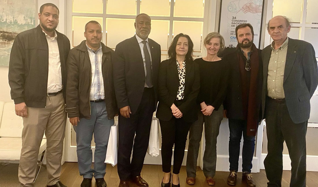 En el marco del Proyecto de fortalecimiento de las capacidades del Sistema Nacional de Salud de Mauritania, liderado por la Agencia Española de Cooperación Internacional para el Desarrollo y gestionado por la Fundación para la Cooperación y Salud Internacional, la Asociación Española de Cirujanos se ha reunido en su sede con una delegación de Mauritania. El objetivo de esta reunión ha sido compartir con los especialistas mauritanos el modelo de Formación Médica Especializada español y que pudieran conocer de primera mano cómo se realiza esta formación desde esta sociedad médico científica. Se presentó la oferta docente propuesta a los socios de la AEC en sus diferentes áreas y las posibilidades de desarrollo en investigación que se brinda a los cirujanos españoles.