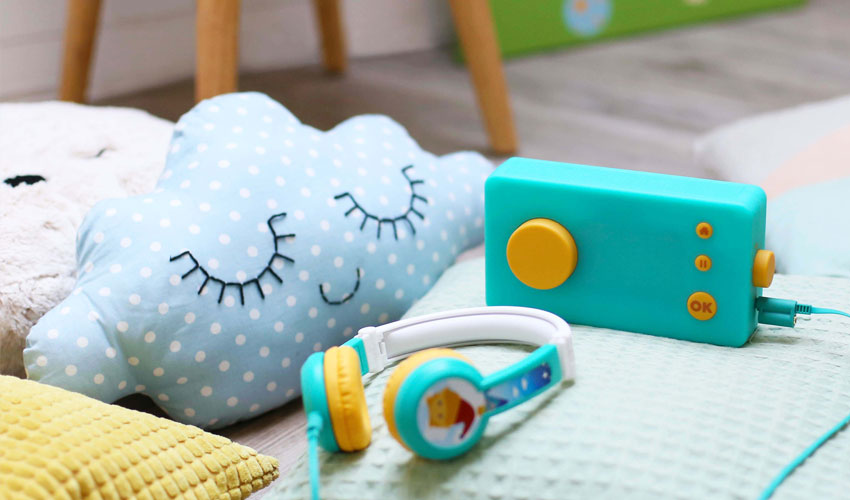 Otro complemento de “ Mi Fábrica de Historias” son los cascos Octave, especialmente diseñado para los más pequeños ya que son resistentes, ajustables y plegables, cómodos, con limitación a 85 dB y, además, incluyen pegatinas para personalizarlo y doble conector para compartir la escucha.