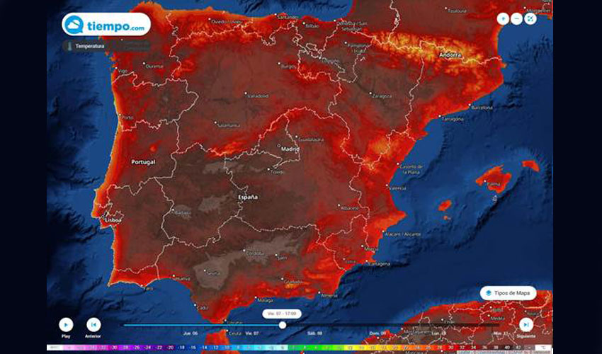 El domingo aumentará la inestabilidad en el centro y el norte de la Península donde existirá riesgo de tormentas vespertinas aisladas, principalmente en las cordilleras montañosas. En el resto el cielo se mantendrá despejado o casi despejado. El calor continuará siendo intenso.