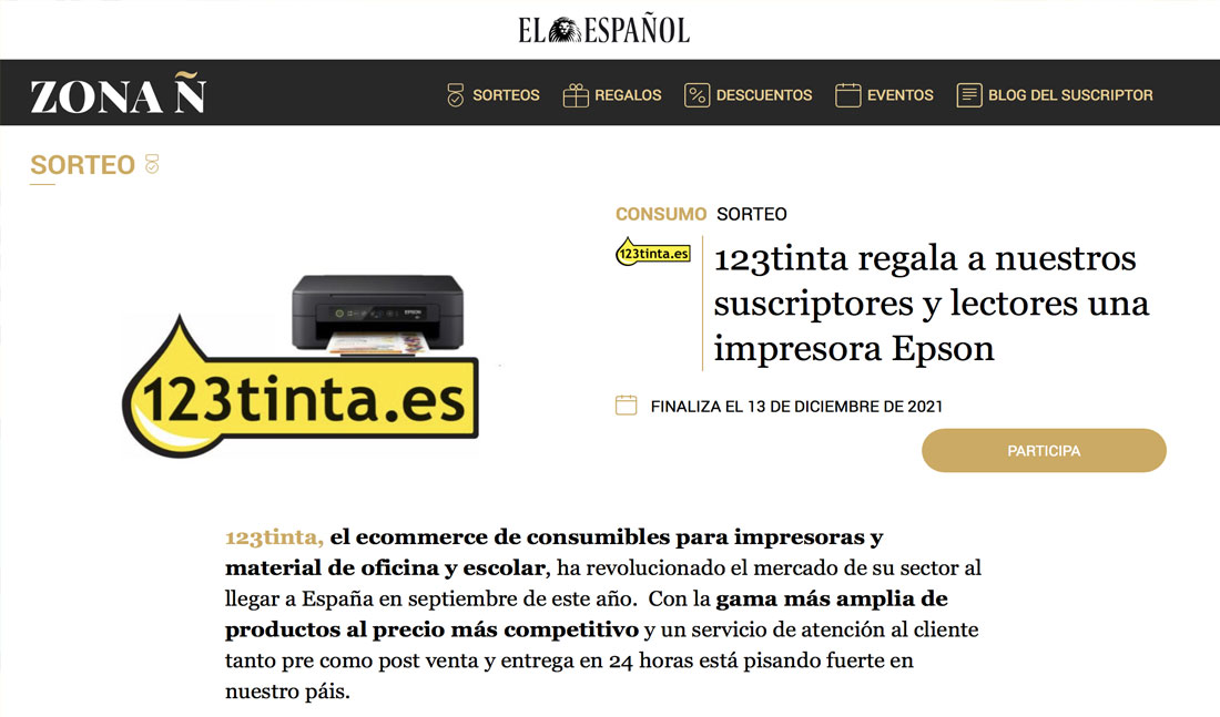 El Español sortea entre sus lectores una impresora Epson Expression Home XP-2100 con WIFI de 123tinta.