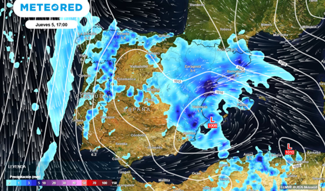 Entre hoy y mañana se esperan chubascos dispersos a veces acompañados de barro en la Península Ceuta y Melilla mientras que en Canarias habrá chaparrones con posibles nevadas en el entorno del Teide y en las cumbres de La Palma. De cara al miércoles y jueves la baja se situará sobre el mar de Alborán intensificando las lluvias en el sur y el área mediterránea especialmente en la Comunidad Valenciana y Cataluña. Durante la tarde del jueves la inestabilidad se reactivará también en el norte peninsular debido al avance de una línea vinculada a una nueva vaguada atlántica que dará lugar a una pequeña DANA.