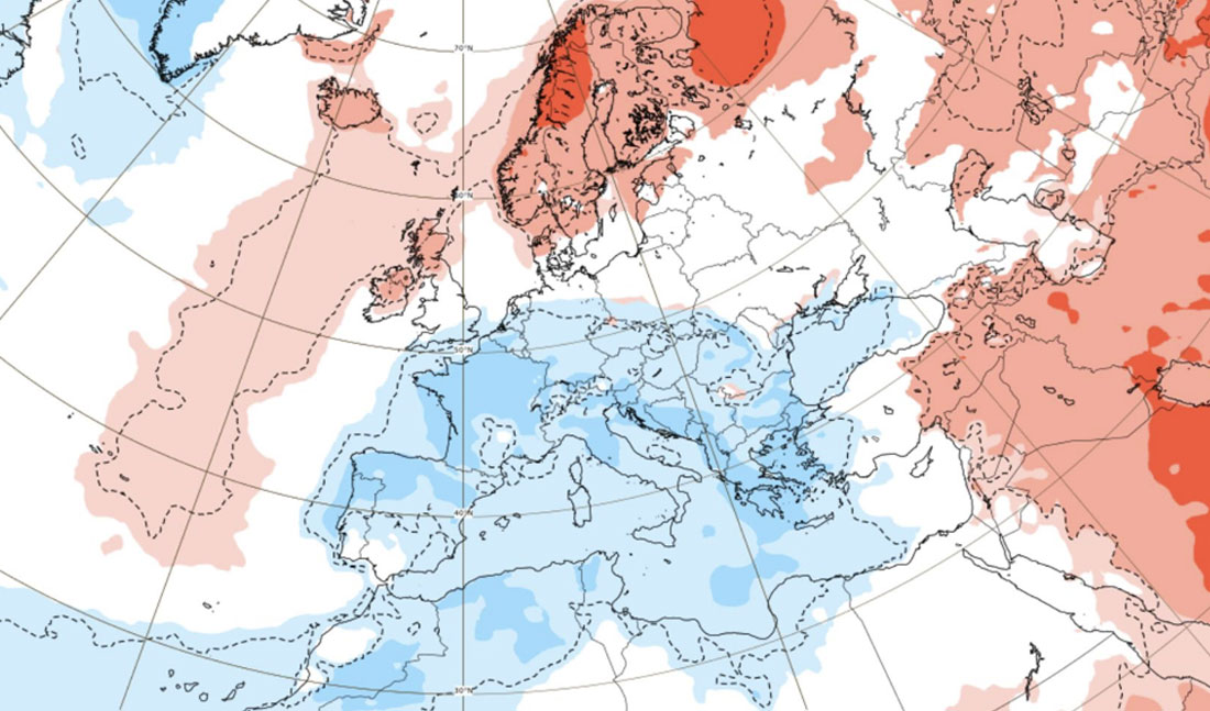 Este año se espera una Navidad fría, con temperaturas entre 1 y 3 ºC por debajo de la media debido a un ascenso del anticiclón hacia el entorno del Mar del Norte y un predominio del viento de levante en gran parte del territorio. También durante los días festivos habrá más precipitaciones de lo normal, según la previsión de Samuel Biener, experto de nuestro cliente Meteored.