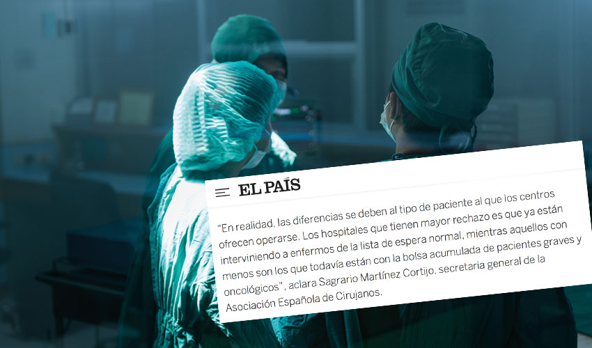 El País ha entrevistado a la Dra. Sagrario Martínez y al Dr. Salvador Navarro, miembros de la Asociación Española de Cirujanos, con motivo de la creciente tasa de pacientes en lista de espera que está rechazando o aplazando la intervención quirúrgica por el miedo causado por el coronavirus.