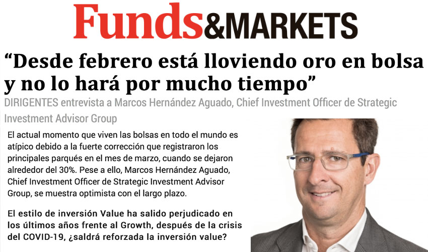 Dirigentes publica una entrevista a Marcos Hernández Aguado, Chief Investment Officer de SIA (Strategic Investment Advisor Group). En ella, habla sobre la situación actual de los mercados, así como de oportunidades de inversión en tiempos revueltos como estos generados por el coronavirus, entre otros temas. Esperamos que os guste.
